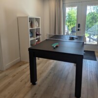 Espace jeux au sous-sol avec table de billard et coin détente parfait pour les soirées en famille ou entre amis.
